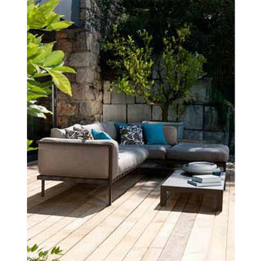 sofá estrutura em alumínio com tiras de nylon estofado em tecido impermeável